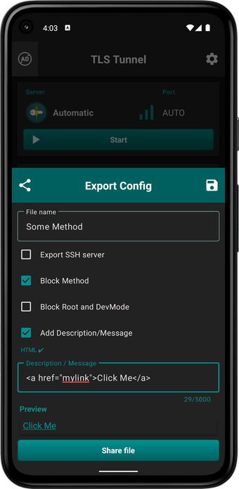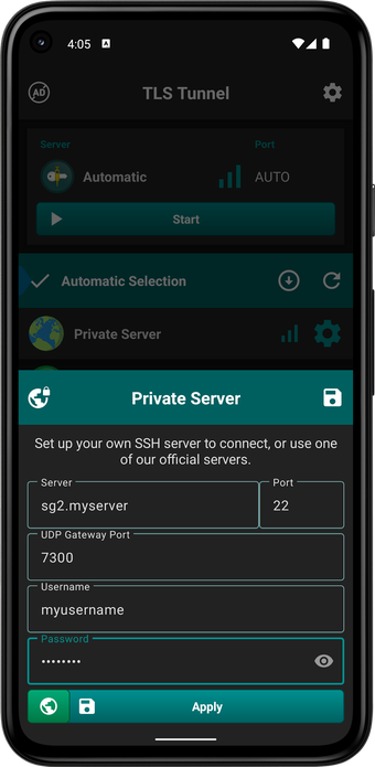 TLS Tunnel - Unlimited VPN setzt Android 9.0 und höher voraus. Die aktuelle Version der App ist 5.0.5 und kann nur auf Englisch ausgeführt werden.